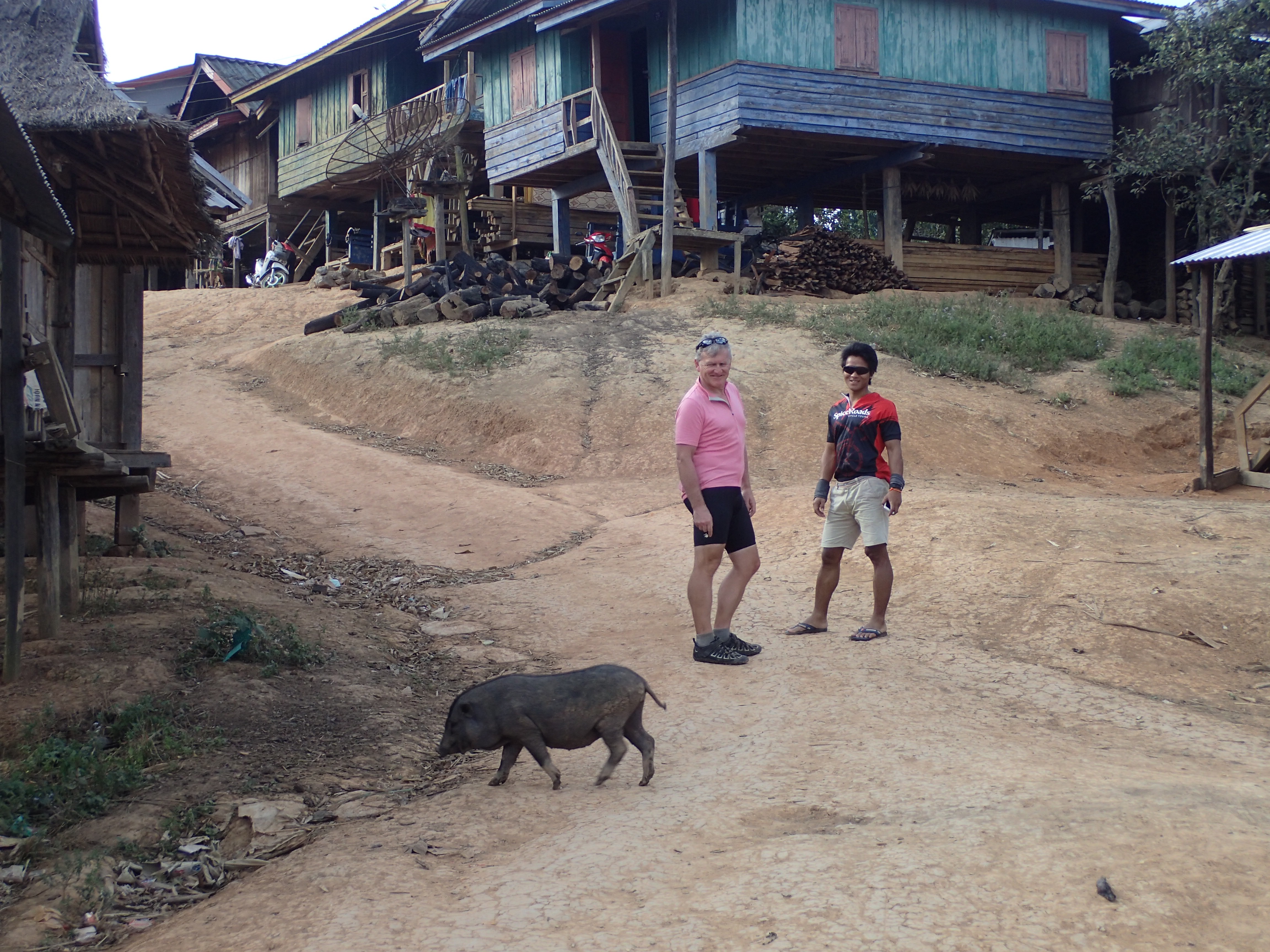 OLYMPUS DIGITAL CAMERA Published January 21, 2016 at 4608 × 3456 in Plain of Jars to Phou Khoun. 21st Jan. Lunch walking in front of us. Oink, Oink.