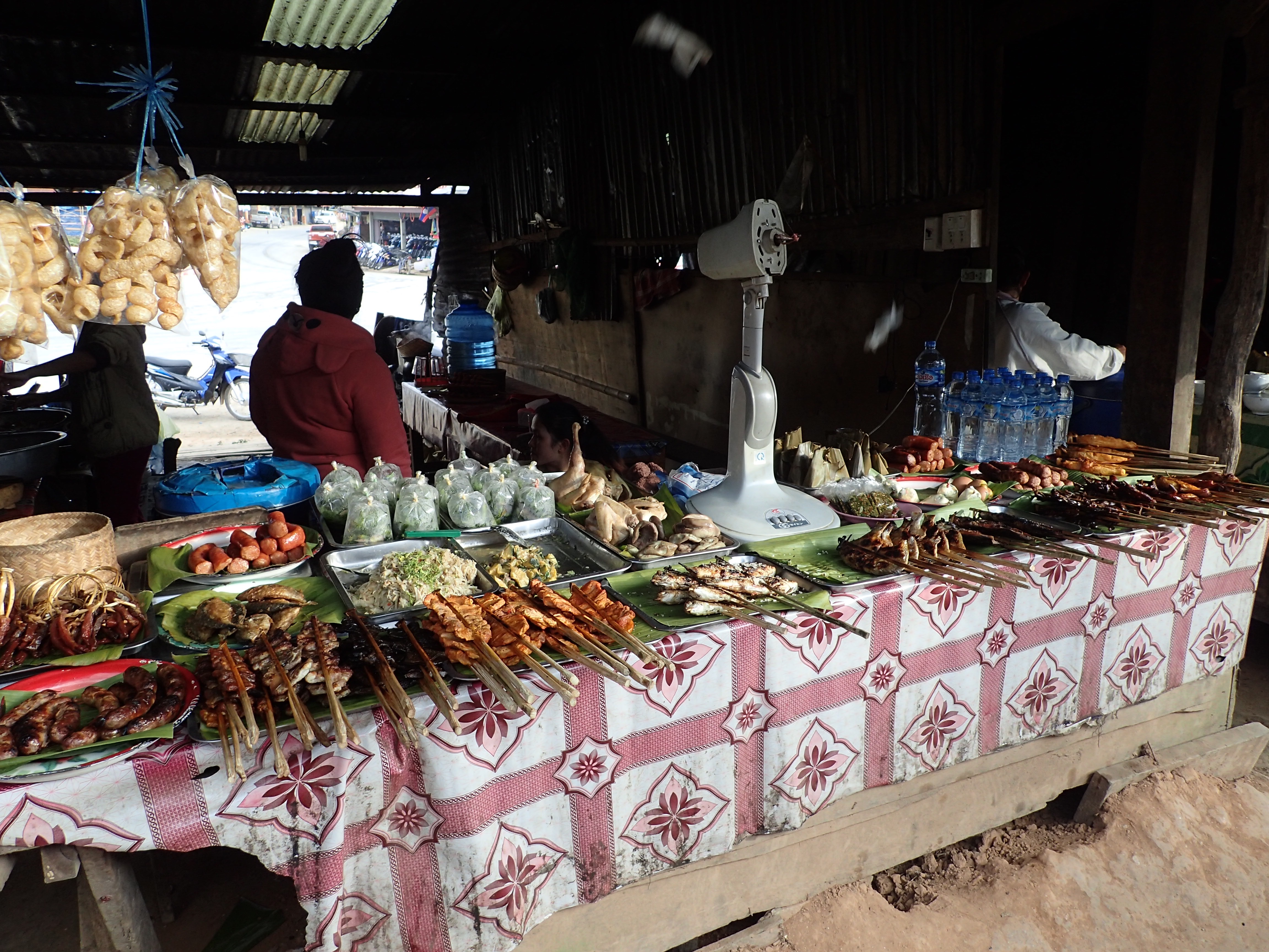 OLYMPUS DIGITAL CAMERA Published January 21, 2016 at 4608 × 3456 in Plain of Jars to Phou Khoun. 21st Jan. Market in Phou Khoun. Generally nice smells. Still wouldn’t eat the cooked meats.