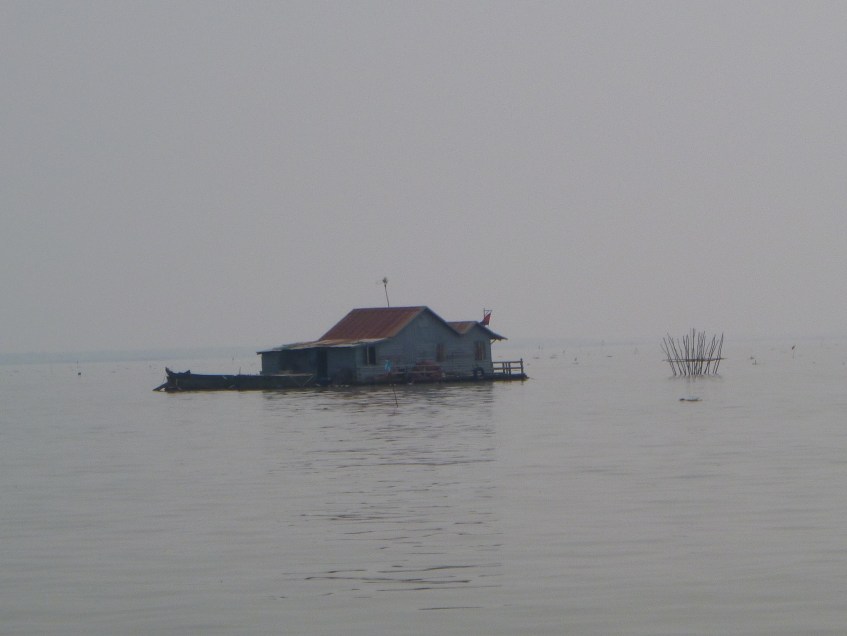 P1110921 Published February 11, 2016 at 2560 × 1920 in Siem Reap and Tonle Sap. Tues/ Wed, 9th + 10th, Feb. No-one likes him. Or maybe the anchor didn’t work. Or he is trying to move neighbourhood. Or……